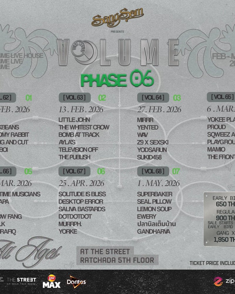 ทุกค่ำคืน เต็มไปด้วยศิลปินที่คุณคุ้นเคยหรืออาจเพิ่งค้นพบ และนี่คือ ไลน์อัปทั้งหมดใน Volume Livehouse Phase 6